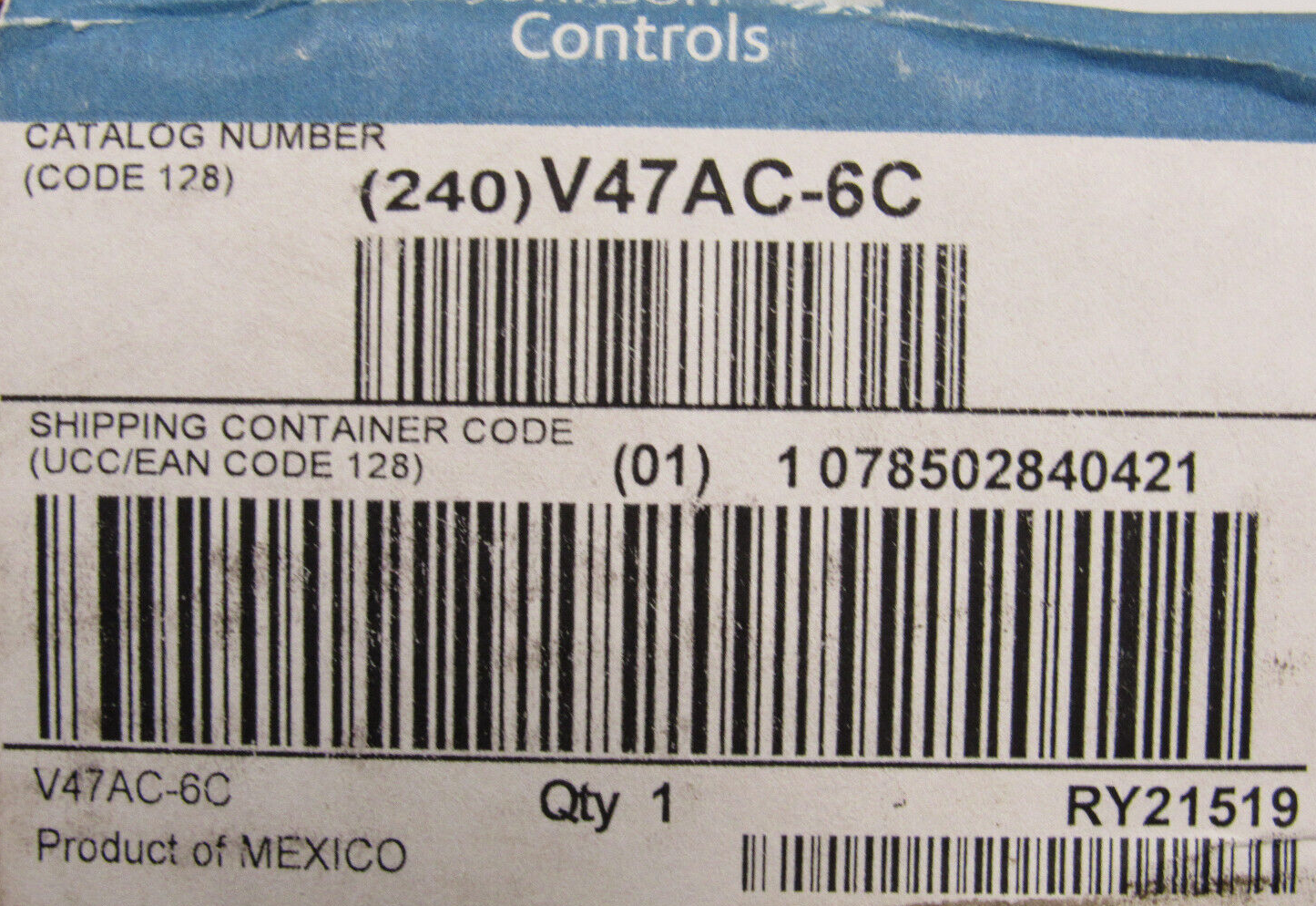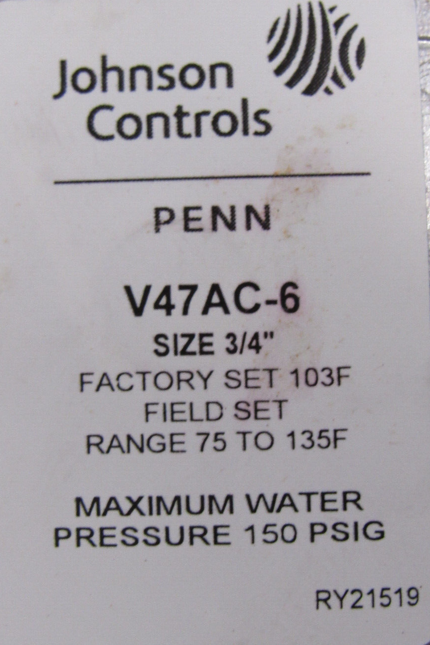 NEW JOHNSON CONTROLS V47AC-6C TEMPERATURE REGULATOR 3/4" 75-135F V47AC6C