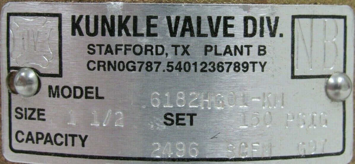 NEW KUNKLE VALVE 6182HG01-KM RELIEF VALVE 1-1/2" 6182HG01KM 6182HG01-KM0150