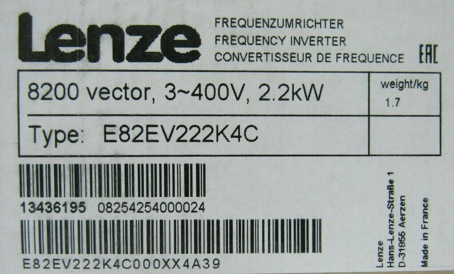 NEW LENZE E82EV222K4C INVERTER 8200 VECTOR 2.2KW$950.00 Out of stock SKU: 192855340474 Category: Other Description Additional information Description NEW LENZE E82EV222K4C INVERTER 8200 VECTOR 2.2KW 3065 BB Additional information Weight 5.00 lbs Brand LENZE MPN E82EV222K4C We Buy New and Used Surplus Inventory - Sell to Us