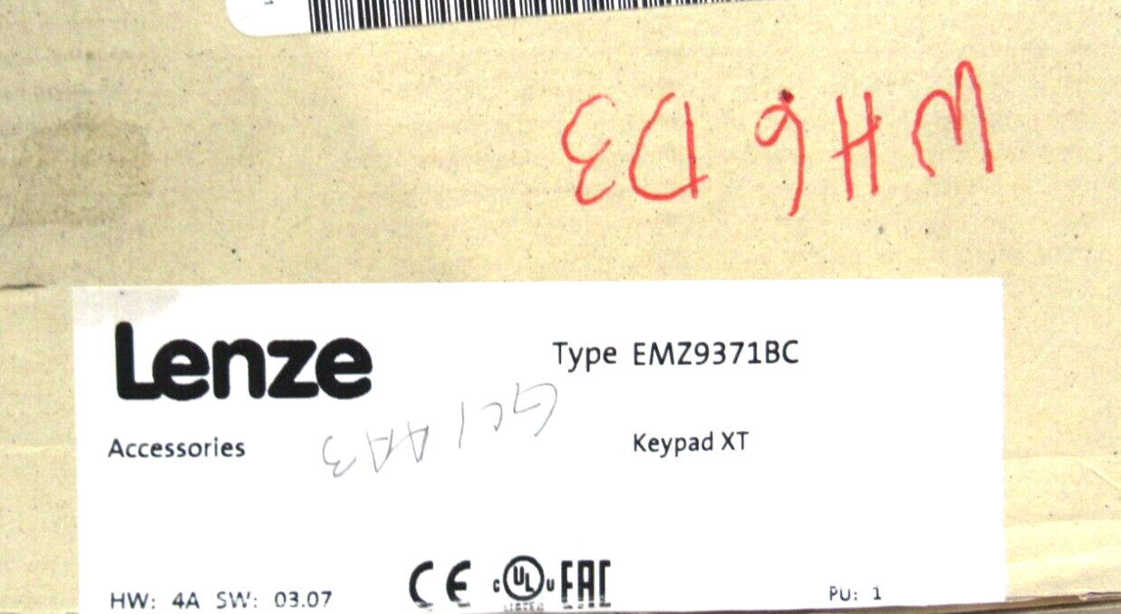 NEW LENZE EMZ9371BC KEYPAD XT$600.00 Only 1 left in stock NEW LENZE EMZ9371BC KEYPAD XT quantity Add to cart SKU: 354911841491 Category: Other Description Additional information Description NEW LENZE EMZ9371BC KEYPAD XT 1678 RB Additional information Weight 0.44 lbs Brand LENZE MPN EMZ9371BC Country/Region of Manufacture Thailand We Buy New and Used Surplus Inventory - Sell to Us