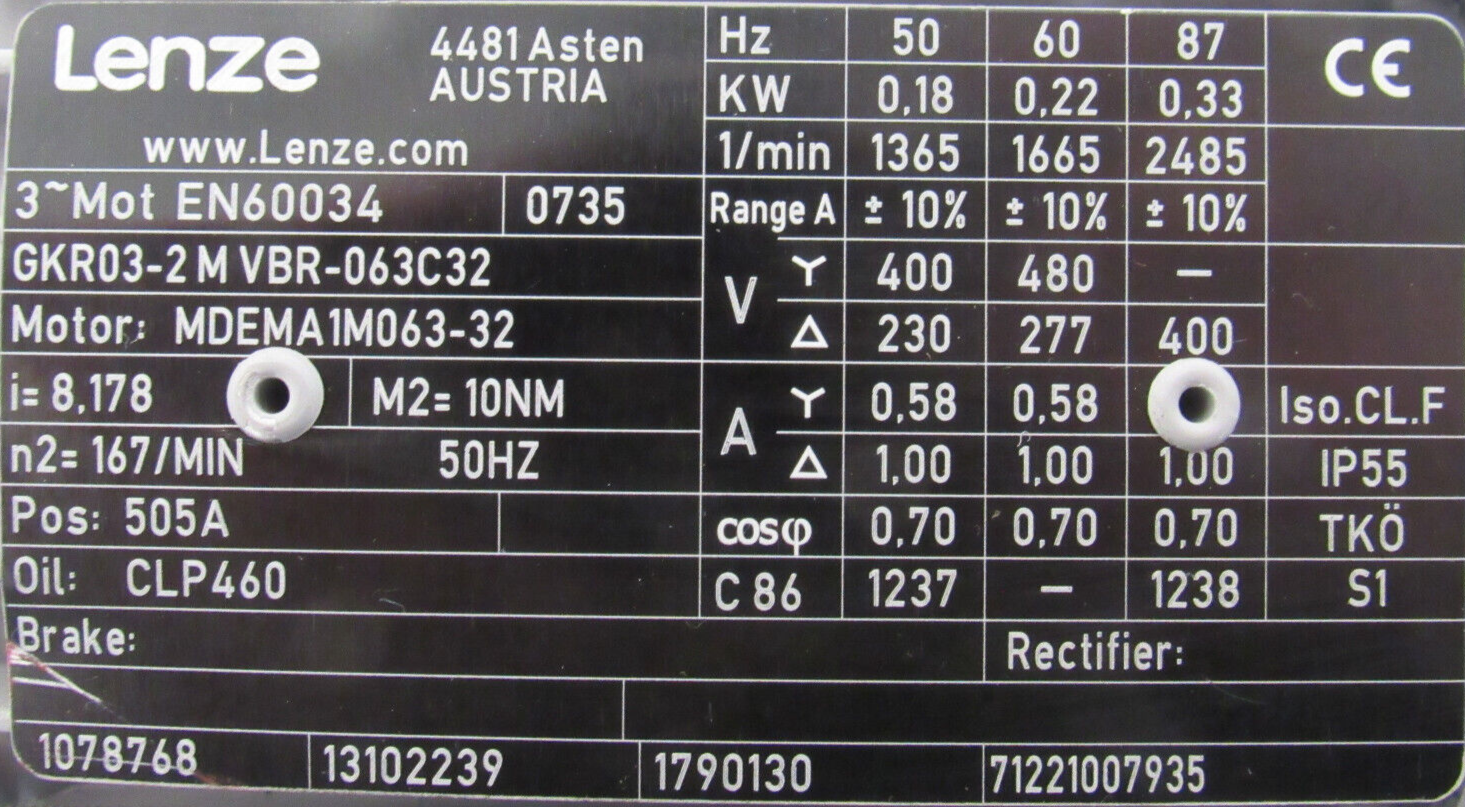 NEW LENZE GKR03-2MVBR-063C32 GEARMOTOR MDEMA1M063-32 GKR032MVBR063C32