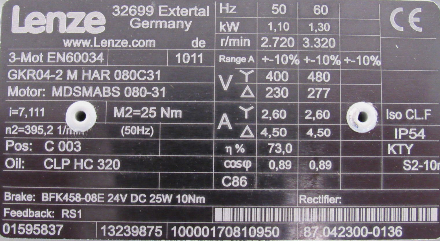 NEW LENZE GKR04-2-M-HAR-080C31 GEAR MOTOR MDSMABS-080-31 GKR042MHAR080C31