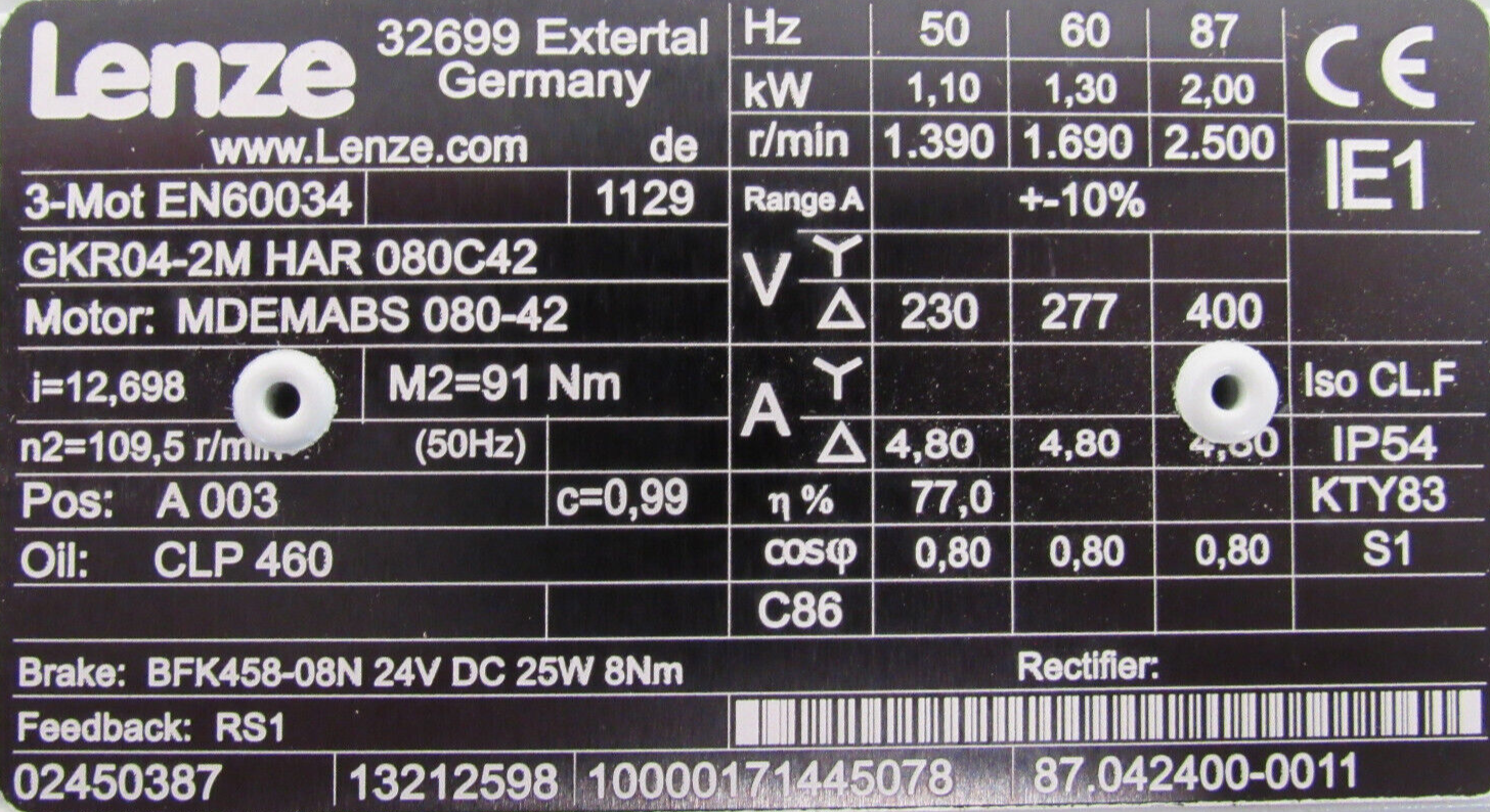 NEW LENZE GKR04-2M-HAR-080C42 GEAR MOTOR/BRAKE MDEMABS-080-42