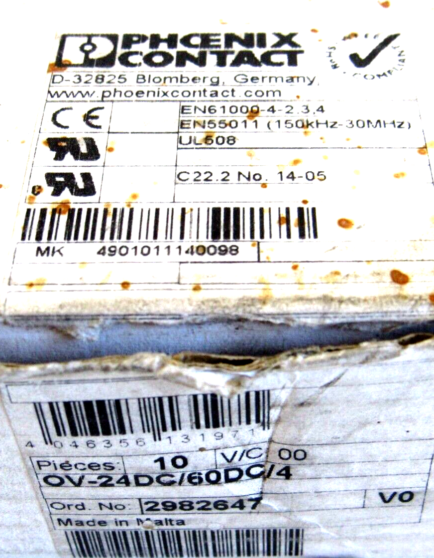 NEW LOT OF 10 PHOENIX CONTACT 2982647 RELAY OV-24DC/ 60DC/4
