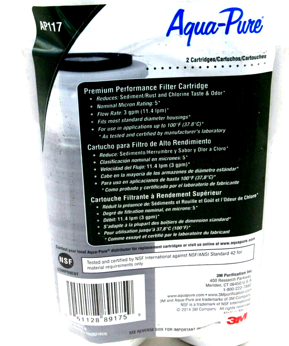 NEW LOT OF 2 3M AQUA PURE AP-117 FILTER CARTRIDGE AP117