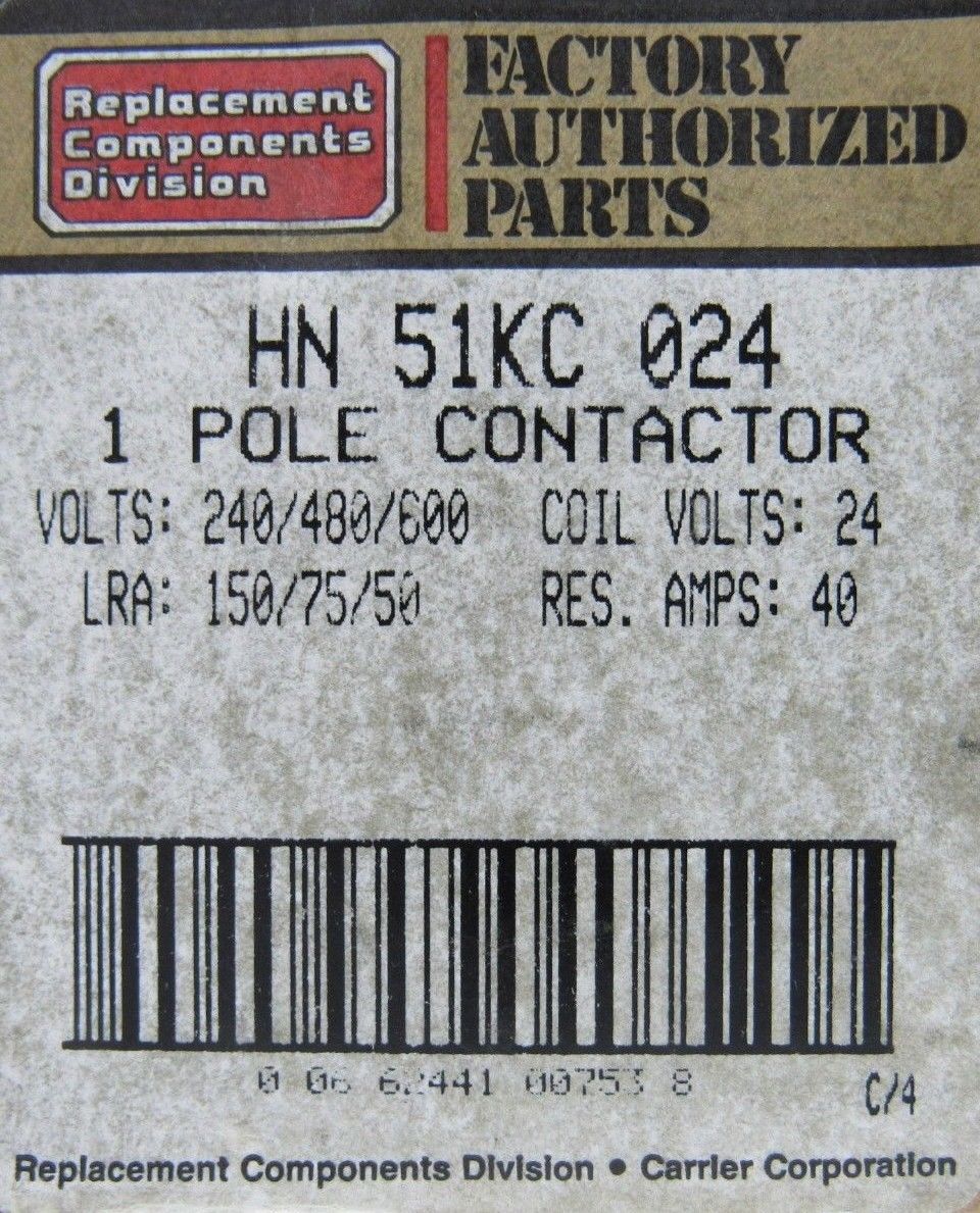 NEW LOT OF 2 CARRIER HN-51KC-024 CONTACTOR 24V 40A HN51KC024 45ED10AJL557R