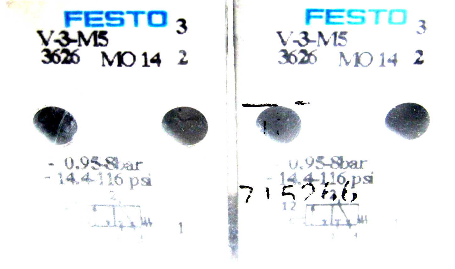 NEW LOT OF 2 FESTO V-3-M5 STEM ACTUATED VALVE V3M5$140.00 Out of stock SKU: 355820281189 Category: Other Description Additional information Description NEW LOT OF 2 FESTO V-3-M5 STEM ACTUATED VALVE V3M5NEW, NO BOX853/BF Additional information Weight 0.31 lbs Brand FESTO MPN V-3-M5 Country/Region of Manufacture Brazil We Buy New and Used Surplus Inventory - Sell to Us
