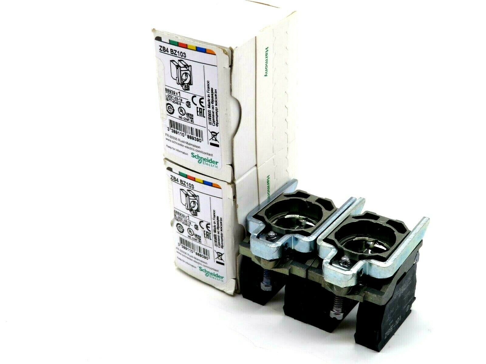 NEW LOT OF 2 SCHNEIDER ELECTRIC ZB4 BZ103 CONTACT BLOCK ZBE-101