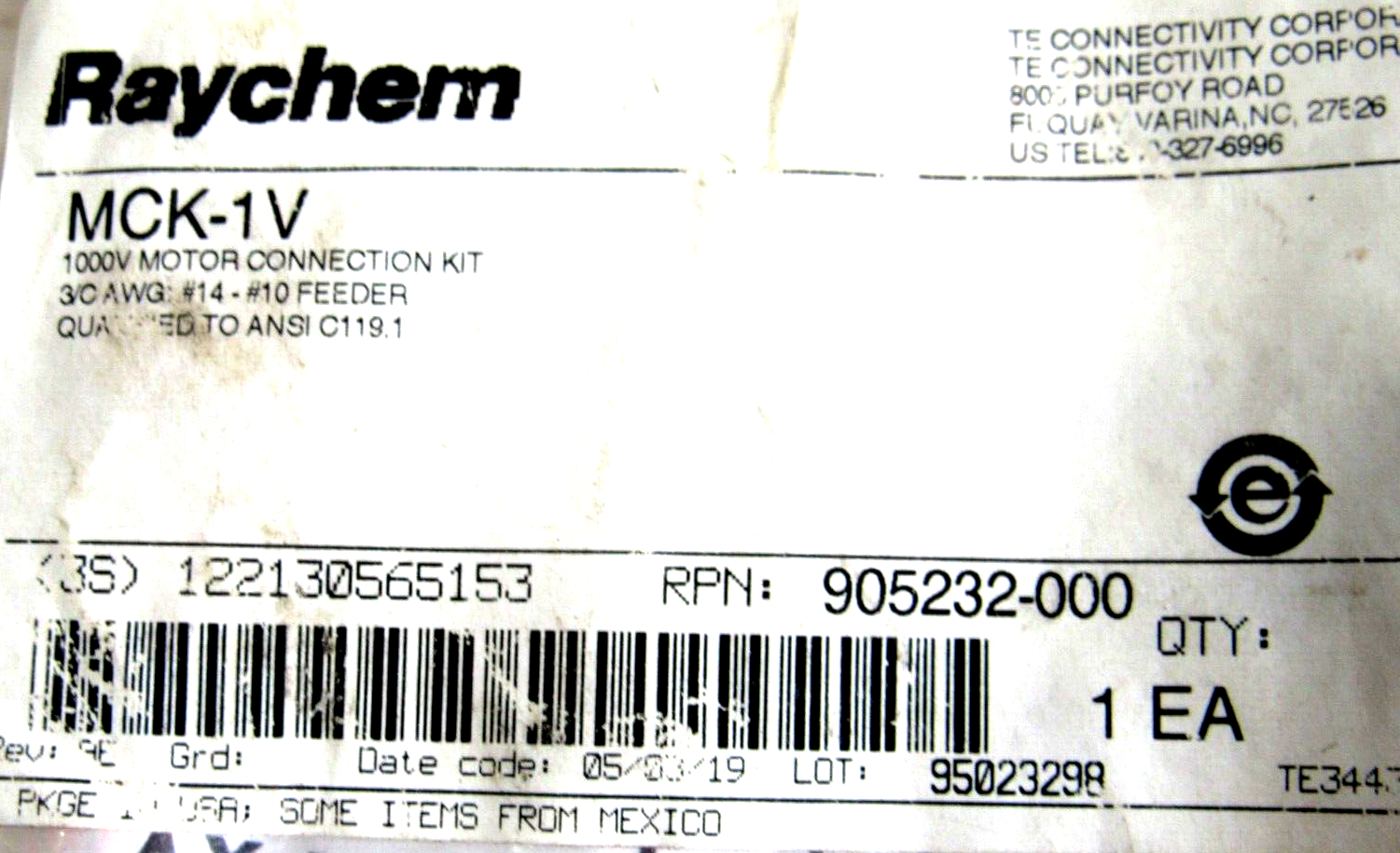 NEW LOT OF 5 RAYCHEM MCK-1V 100V MOTOR CONNECTION KIT MCK1V