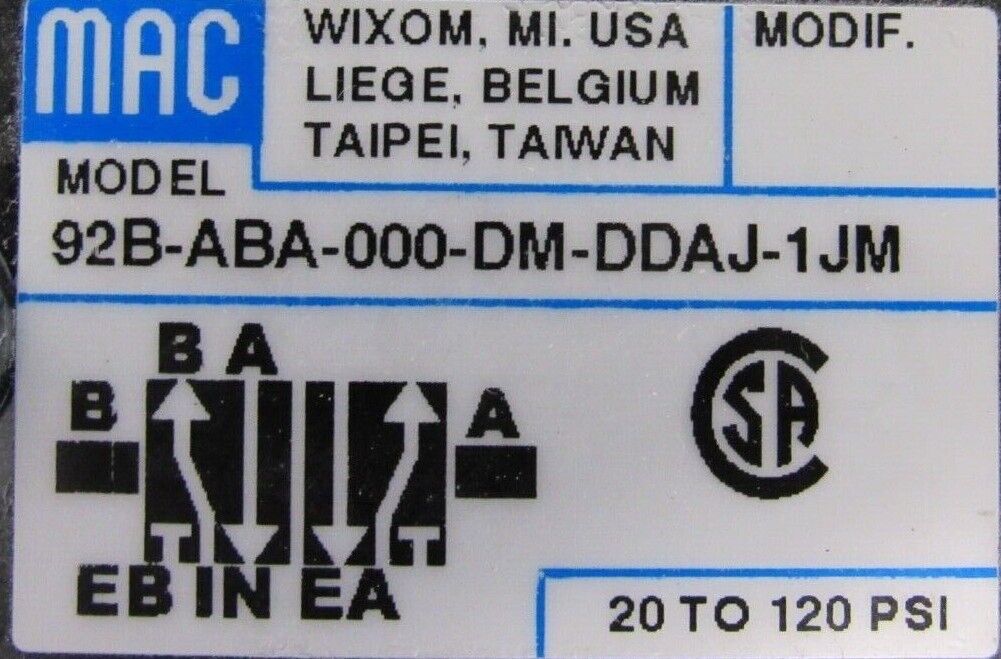 NEW MAC VALVES PR92C-CEAA VALVE MANIFOLD 92B-ABA-000-DN-DDAJ-1JM PR92CCEAA