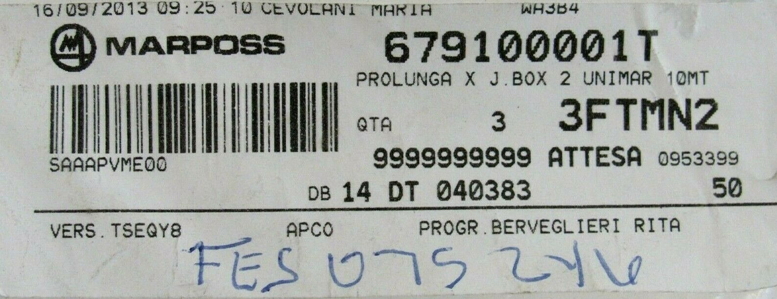 NEW MARPOSS 679100001T EXTENSION CABLE$200.00 Out of stock SKU: 195040297834 Category: Other Description Additional information Description NEW MARPOSS 679100001T EXTENSION CABLE 3135 BB Additional information Weight 4.00 lbs MPN 679100001T Brand MARPOSS We Buy New and Used Surplus Inventory - Sell to Us