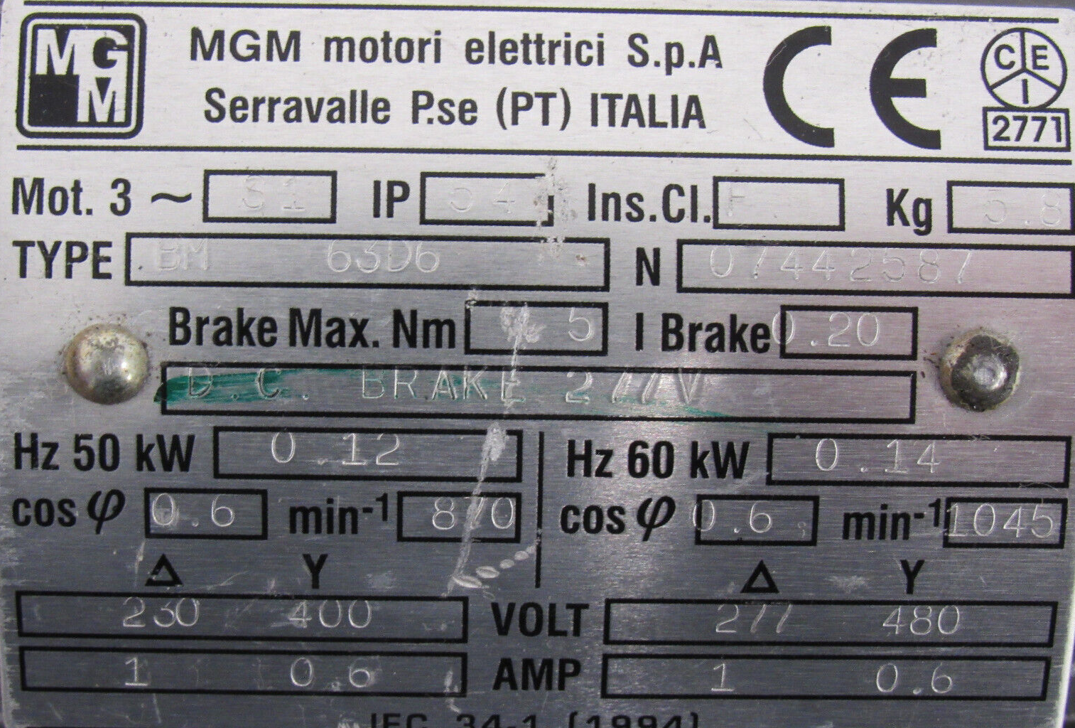 NEW MGM BM63D6 BRAKE MOTOR .14KW 277/480V$180.00 Out of stock SKU: 175869093112 Category: Other Description Additional information Description NEW MGM BM63D6 BRAKE MOTOR .14KW 277/480VNEW, NO BOX B3/157 BB Additional information Weight 15.00 lbs Brand MGM MPN BM63D6 We Buy New and Used Surplus Inventory - Sell to Us