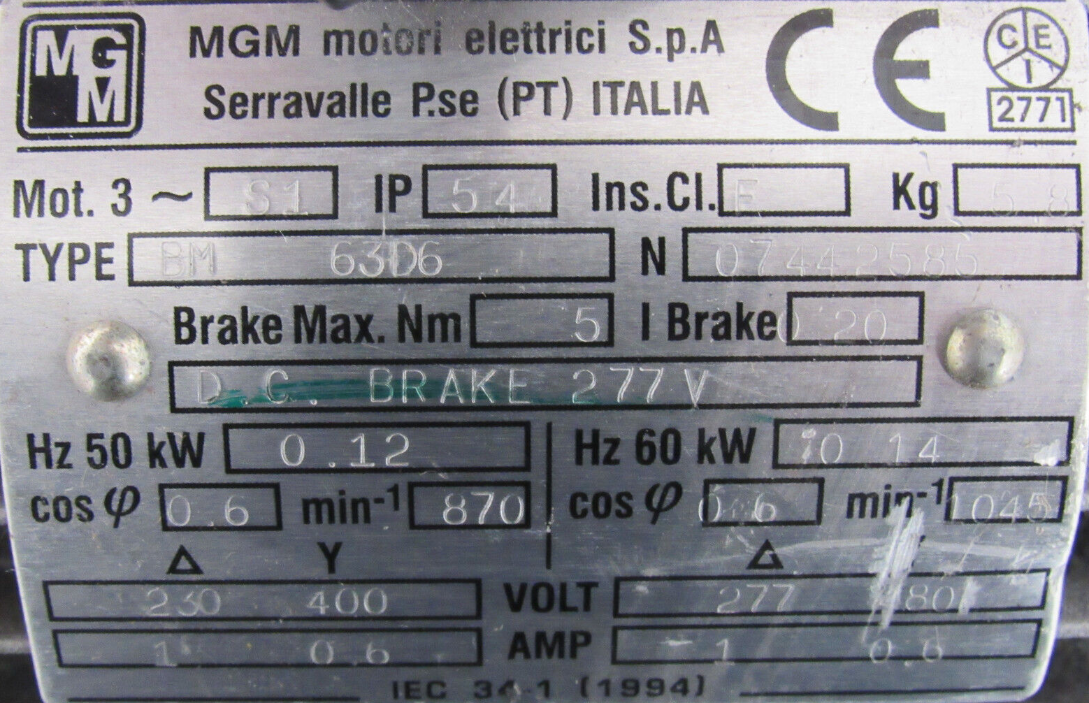 NEW MGM BM63D6 GEAR MOTOR .14KW 277/480V VF44P MVF44 VF-44-P$300.00 In stock NEW MGM BM63D6 GEAR MOTOR .14KW 277/480V VF44P MVF44 VF-44-P quantity Add to cart SKU: 195945695380 Category: Other Description Additional information Description NEW MGM BM63D6 GEAR MOTOR .14KW 277/480V VF44P MVF44 VF-44-PNEW, NO BOX B3/157 BB Additional information Weight 19.00 lbs Brand MGM MPN BM63D6 Country/Region of Manufacture Italy We Buy New and Used Surplus Inventory - Sell to Us