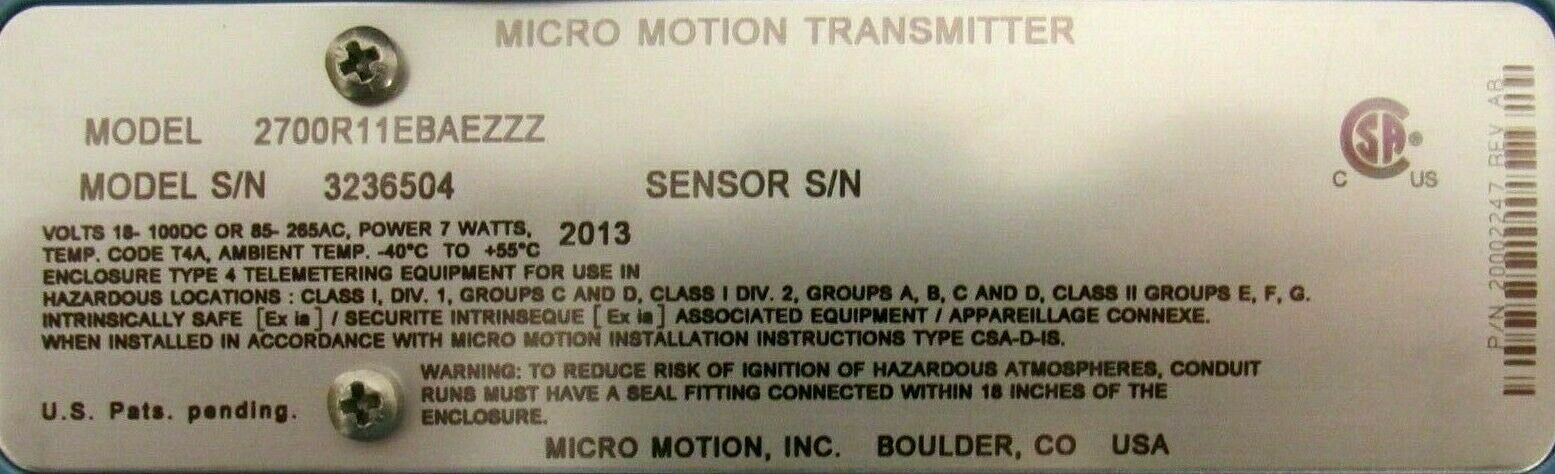 NEW MICRO MOTION 2700R11EBAEZZZ FLOW TRANSMITTER$1,800.00 Out of stock SKU: 353312923399 Category: Other Description Additional information Description NEW MICRO MOTION 2700R11EBAEZZZ FLOW TRANSMITTER B3/S170 BB Additional information Weight 15.00 lbs MPN 2700R11EBAEZZZ Brand MICRO MOTION We Buy New and Used Surplus Inventory - Sell to Us