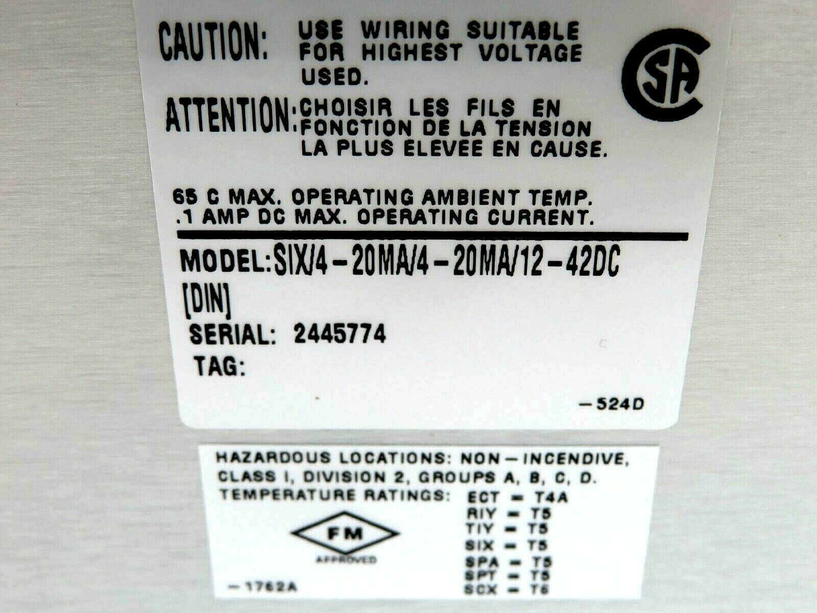 NEW MOORE INDUSTRIES SIX/4-20MA/4-20MA/12-42DC-DIN SIGNAL ISOLATOR SIX420MA420MA