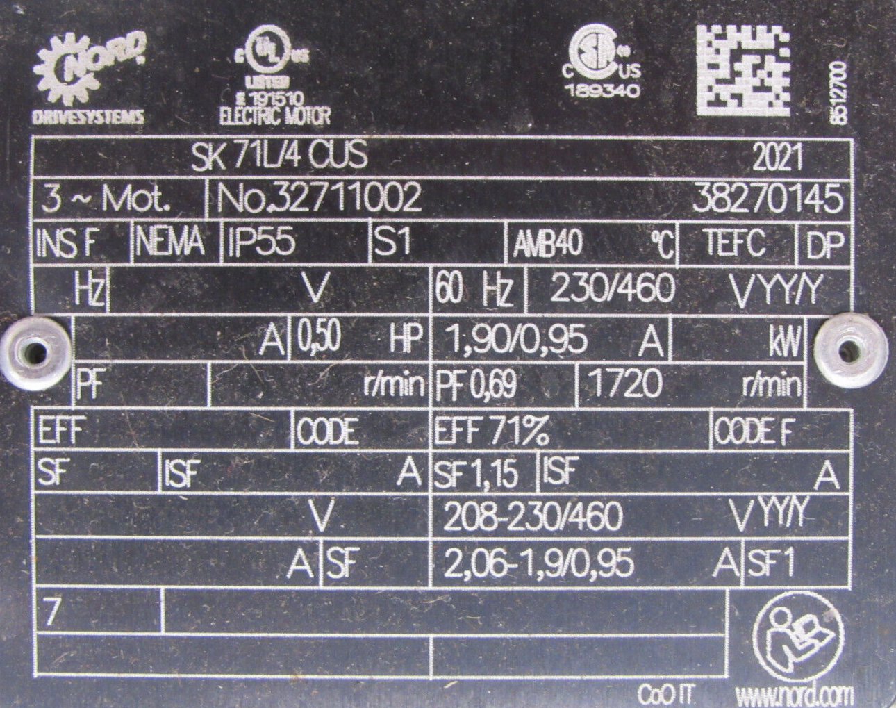 NEW NORD SK12F-71L/4 CUS GEAR MOTOR 43.09:1 SK71L/4 CUS SK12F71L4CUS