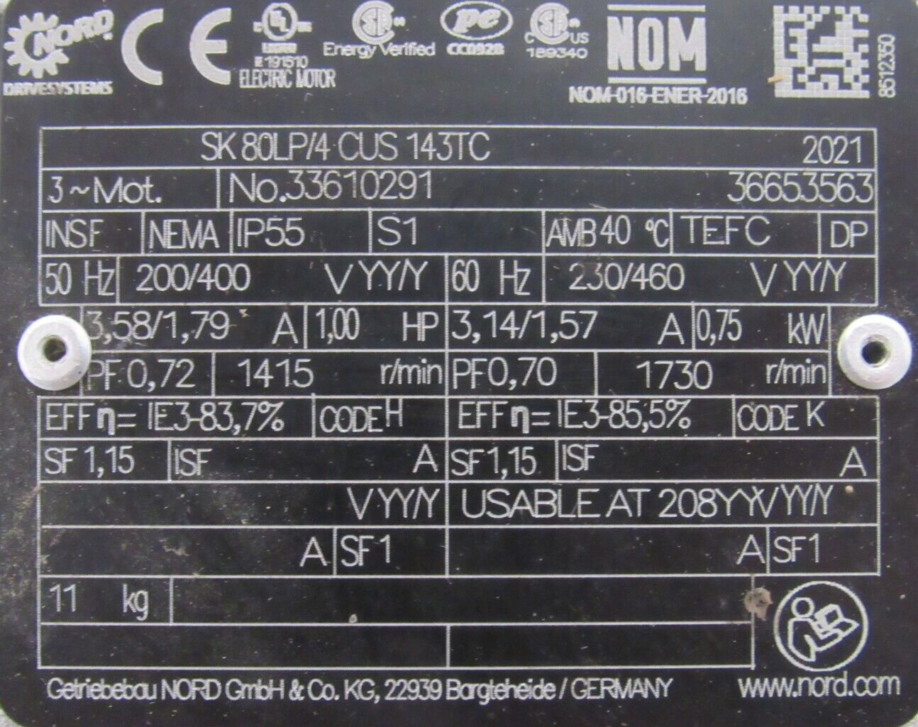 NEW NORD SK1SI63-N140TC-80LP/4 REDUCER 15:1 SK80LP/4 CUS 143TC 1HPNEW, NO BOX