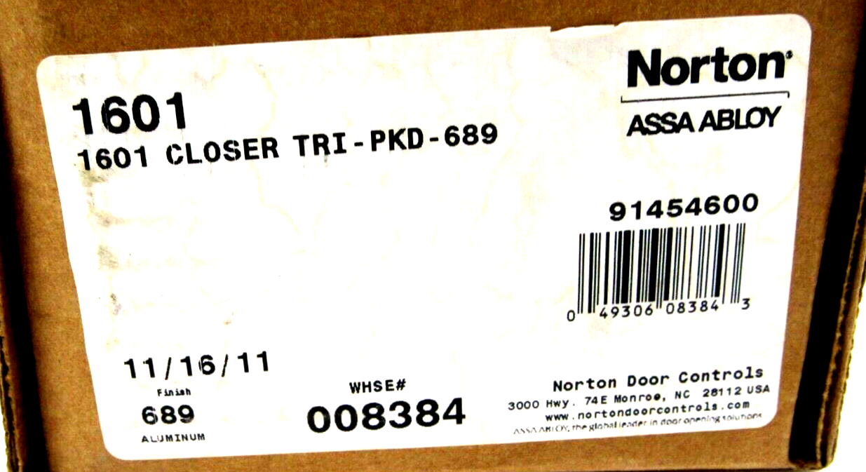 NEW NORTON 1601 DOOR CLOSER TRI-PKD-689$140.00 In stock NEW NORTON 1601 DOOR CLOSER TRI-PKD-689 quantity Add to cart SKU: 195976403126 Category: Other Description Additional information Description NEW NORTON 1601 DOOR CLOSER TRI-PKD-689B1SH6/BF Additional information Weight 7.00 lbs Brand NORTON Type Door Closer MPN 1601 Country/Region of Manufacture United States We Buy New and Used Surplus Inventory - Sell to Us