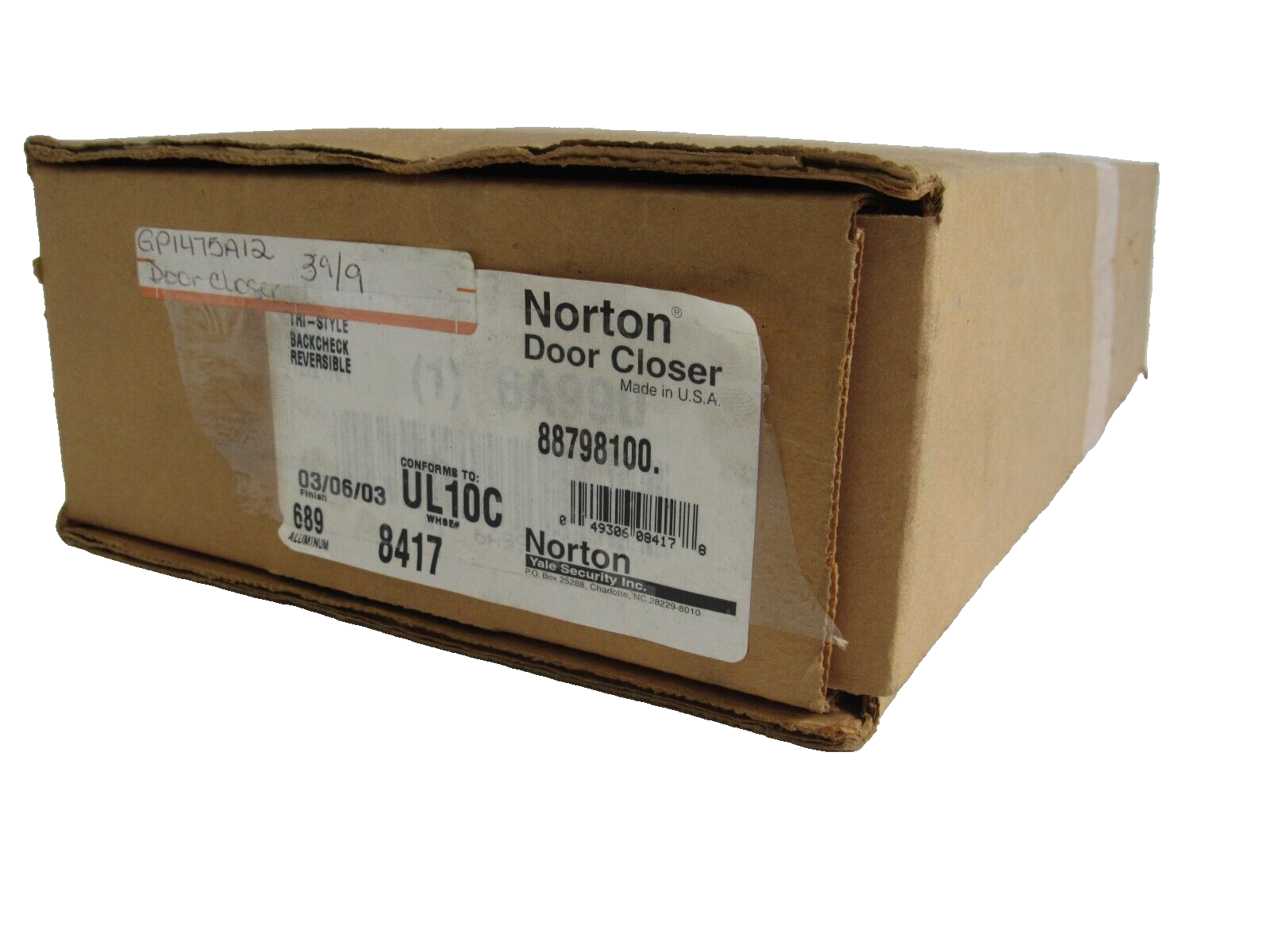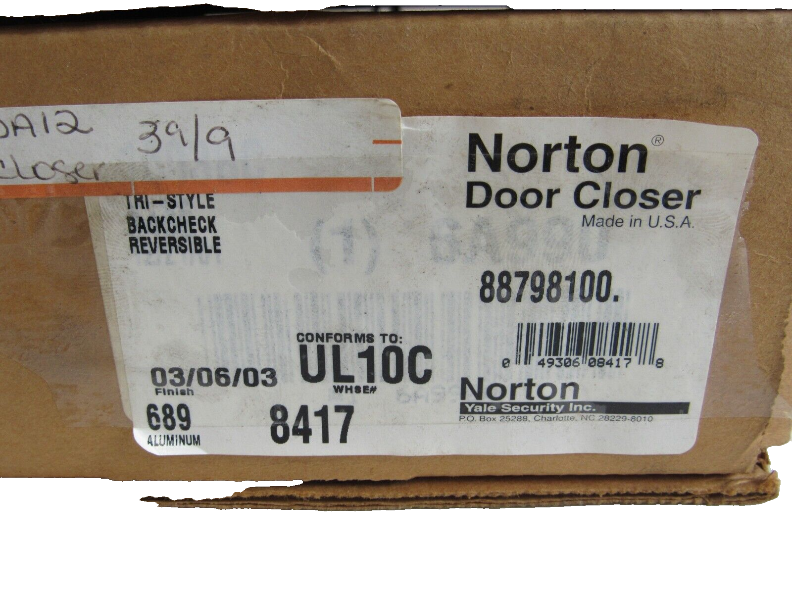 NEW NORTON UL10C DOOR CLOSER 1600 SERIES$165.00 Only 1 left in stock NEW NORTON UL10C DOOR CLOSER 1600 SERIES quantity Add to cart SKU: 356083062329 Category: Other Description Additional information Description NEW NORTON UL10C DOOR CLOSER 1600 SERIESB1SH47/BF Additional information Weight 8.44 lbs Brand NORTON Type Door Closer MPN UL10C We Buy New and Used Surplus Inventory - Sell to Us
