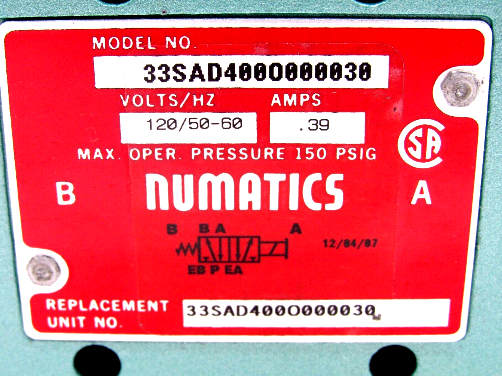 NEW NUMATICS 33SAD400O000030 SOLENOID VALVE$625.00 Out of stock SKU: 195694360858 Category: Other Description Additional information Description NEW NUMATICS 33SAD400O000030 SOLENOID VALVENEW, NO BOX 1120/BF Additional information Weight 4.00 lbs Brand NUMATICS Valve Operation SOLENOID MPN 33SAD400O000030 We Buy New and Used Surplus Inventory - Sell to Us