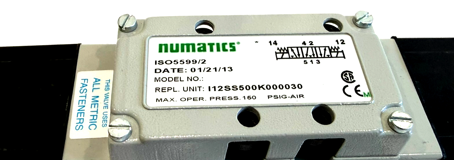 NEW NUMATICS I12SS500K000030 SOLENOID VALVE$265.00 In stock NEW NUMATICS I12SS500K000030 SOLENOID VALVE quantity Add to cart SKU: 358266119968 Category: Other Description Additional information Description NEW NUMATICS I12SS500K000030 SOLENOID VALVE3511/BF Additional information Weight 3.00 lbs Brand Numatics Valve Operation Solenoid MPN I12SS500K000030 Country of Origin United States We Buy New and Used Surplus Inventory - Sell to Us
