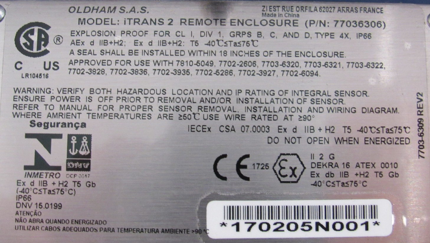 NEW OLDHAM 77036306 ITRANS 2 REMOTE ENCLOSURE 7703-6306NEW, NO BOX