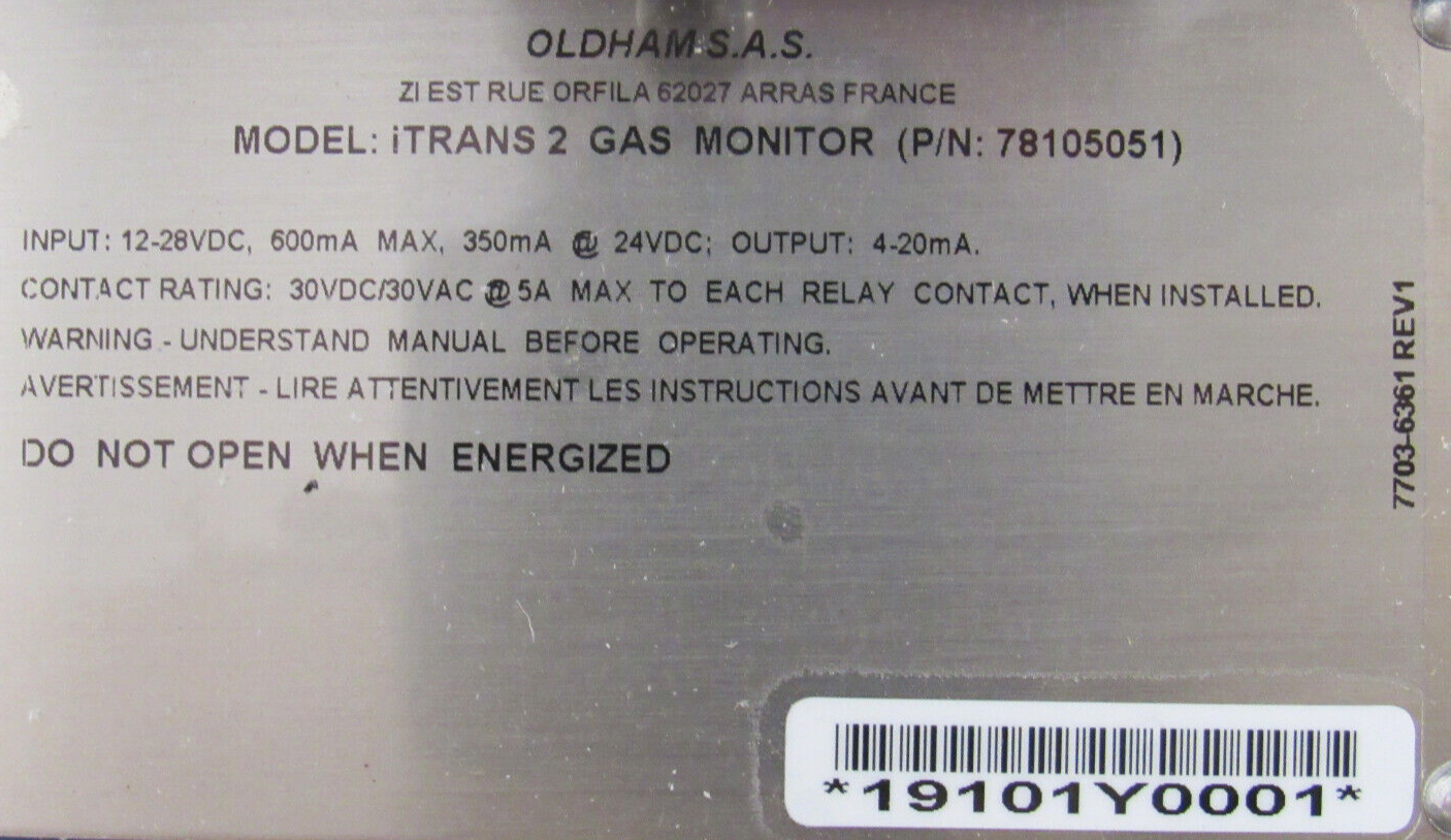 NEW OLDHAM GAS 78105051 GAS DETECTOR 7702-5288