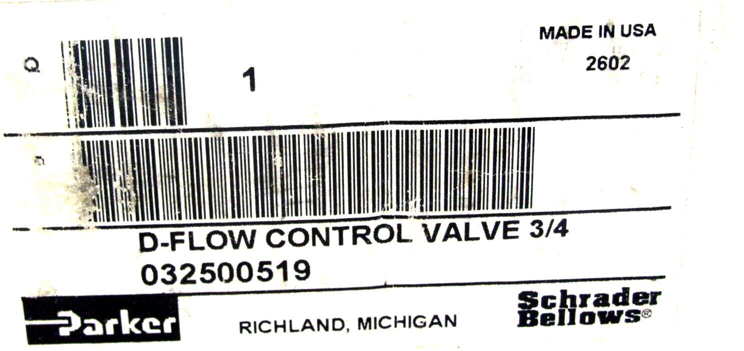 NEW PARKER 032500519 VALVE FLOW CONTROL$100.00 Out of stock SKU: 175675688141 Category: Other Description Additional information Description NEW PARKER 032500519 VALVE FLOW CONTROLB1SH73/BF Additional information Weight 3.00 lbs Brand Parker MPN 032500519 Country/Region of Manufacture United States We Buy New and Used Surplus Inventory - Sell to Us