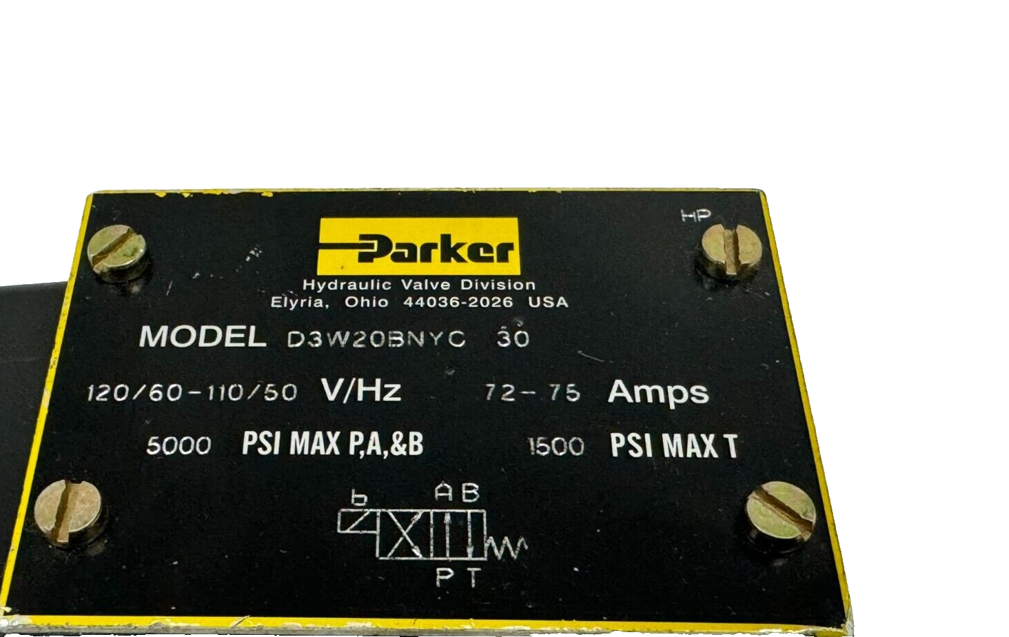 NEW PARKER D3W20BNYC-30 HYDRAULIC CONTROL VALVE 110/120V 50/60HZ 72-75A