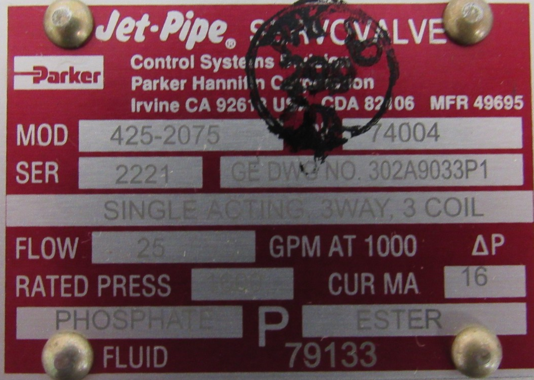 NEW PARKER JET-PIPE 425-2075 SERVO VALVE 4252075 74004