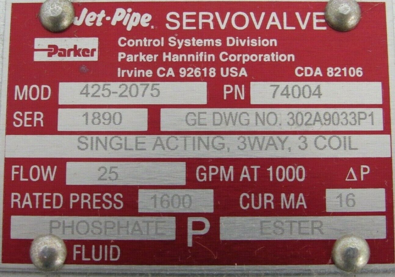 NEW PARKER JET-PIPE 425-2075 SERVO VALVE 74004 4252075NEW, NO BOX