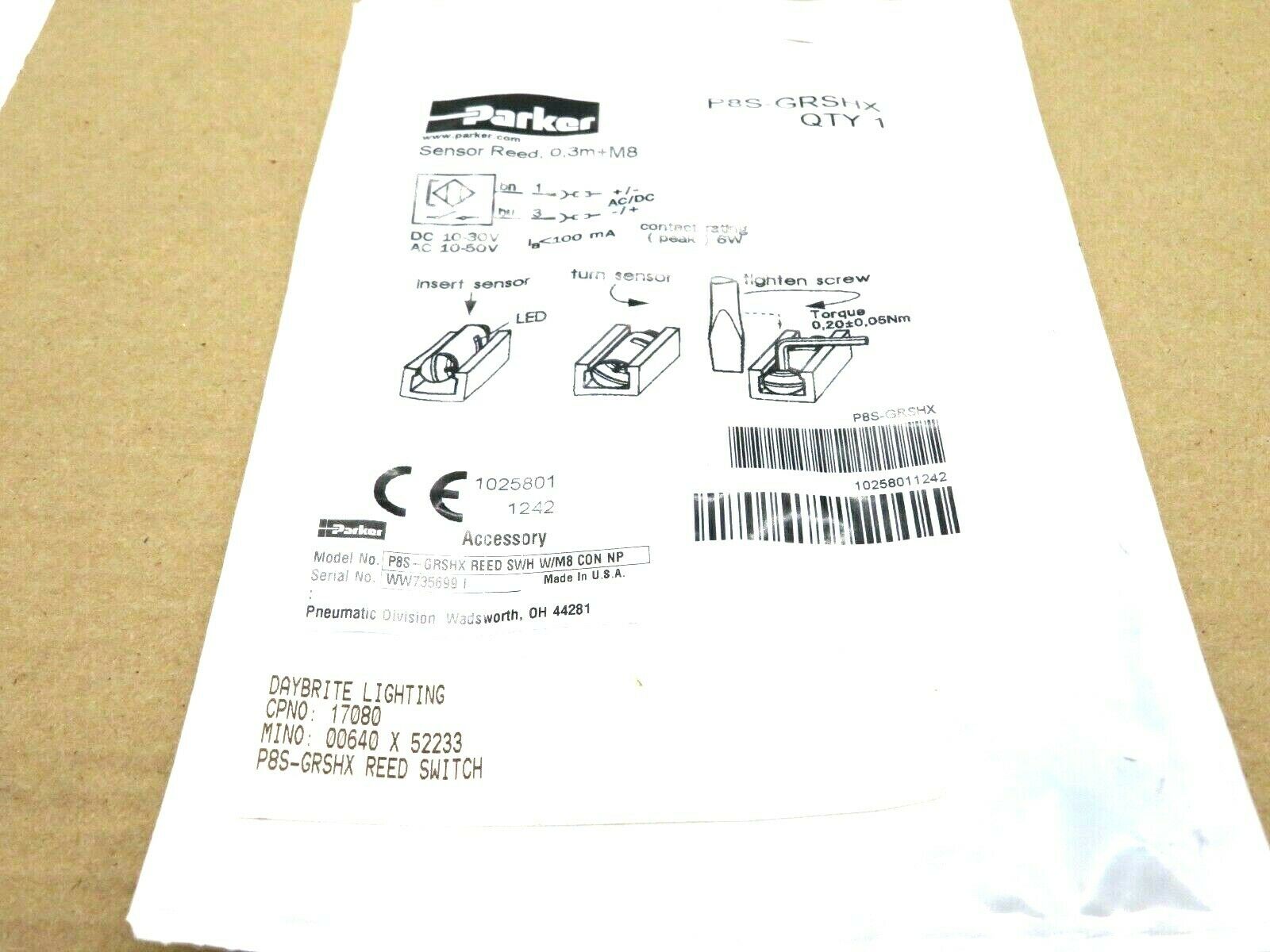 NEW PARKER P8S-GRSHX SENSOR REED P8SGRSHX$50.00 Out of stock SKU: 174984868842 Category: Other Description Additional information Description NEW PARKER P8S-GRSHX SENSOR REED P8SGRSHXNEW, NO BOX 1304/BF Additional information Weight 1.00 lbs MPN P8S-GRSHX Country/Region of Manufacture Hungary Brand Parker We Buy New and Used Surplus Inventory - Sell to Us