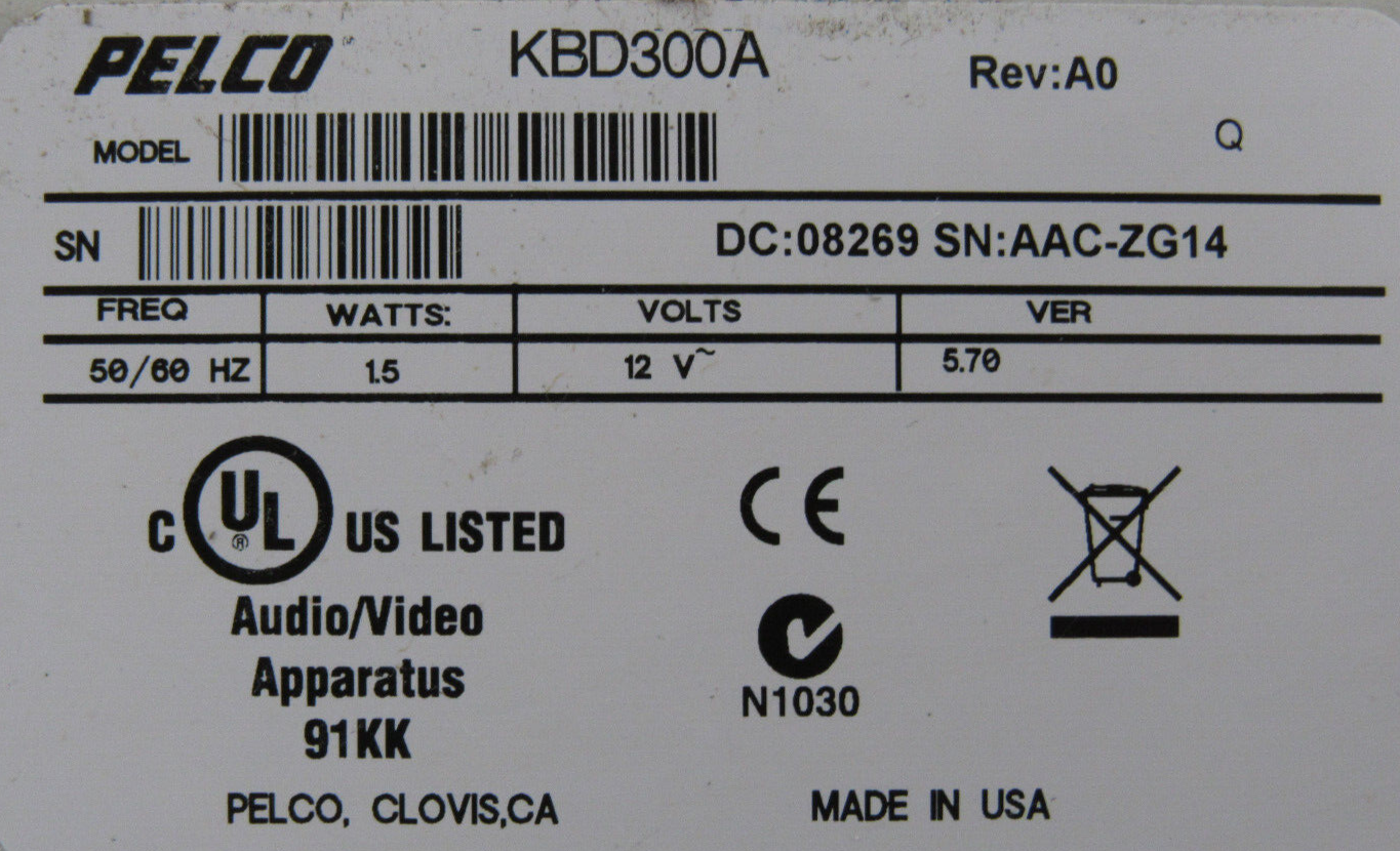 NEW PELCO KBD300A KEYBOARD VARI-SPEED JOYSTICK CONTROLLER$580.00 Out of stock SKU: 175811313430 Category: Other Description Additional information Description NEW PELCO KBD300A KEYBOARD VARI-SPEED JOYSTICK CONTROLLER B3/158 BB Additional information Weight 3.00 lbs Brand PELCO Type Keypad Model CAM MPN KBD300A We Buy New and Used Surplus Inventory - Sell to Us