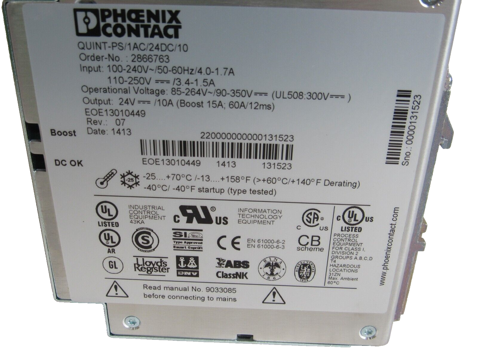 NEW PHOENIX CONTACT QUINT-PS/1AC/24DC/10 POWER SUPPLY QUINTPS1AC24DC10 2866763