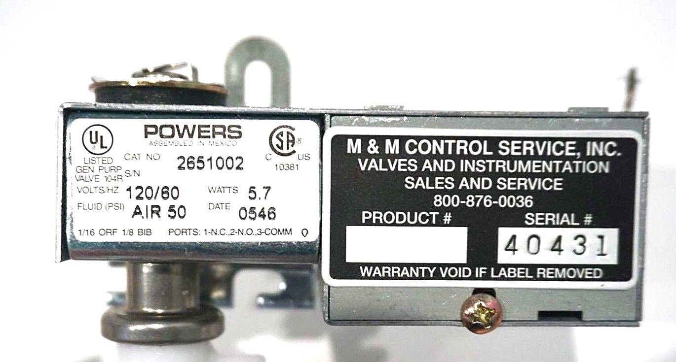 NEW POWERS 2651002 PNEUMATIC AIR VALVE$20.00 Out of stock SKU: 173717941255 Category: Other Description Additional information Description NEW POWERS 2651002 PNEUMATIC AIR VALVE1544 RB Additional information Weight 1.00 lbs Brand POWERS MPN 2651002 We Buy New and Used Surplus Inventory - Sell to Us