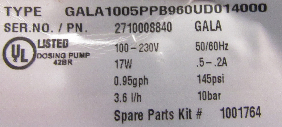 NEW PROMINENT GALA1005PPB960UD014000 METERING DOSING PUMPNEW, NO BOX