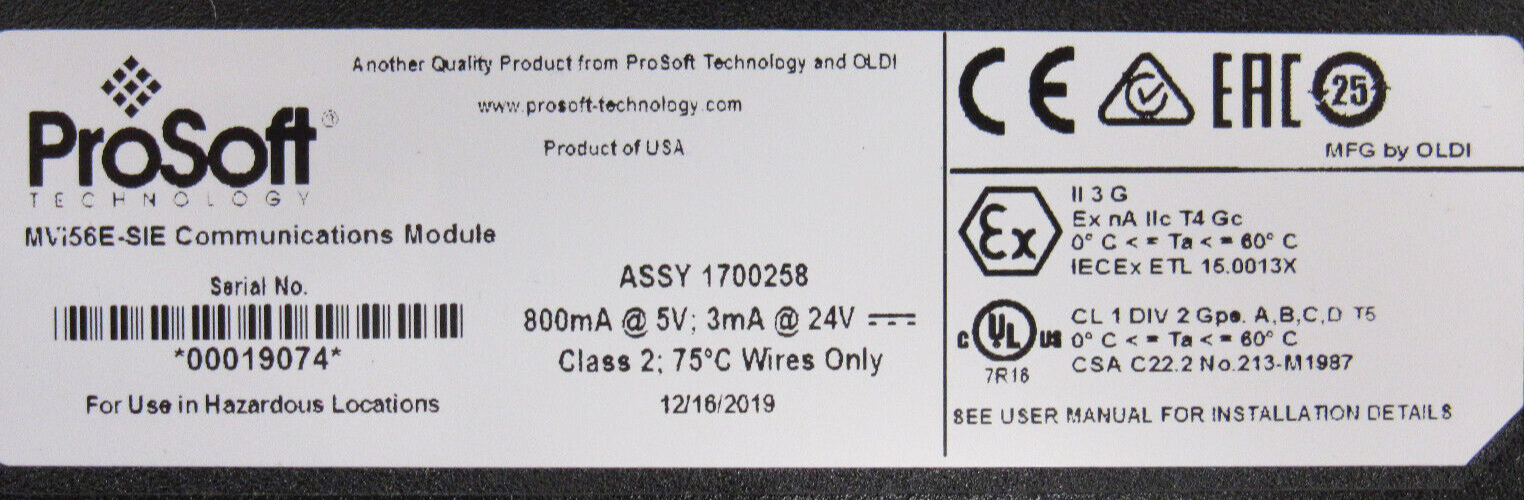 NEW PROSOFT MVI56E-SIE COMMUNICATION CARD MVI56ESIENEW, NO BOX