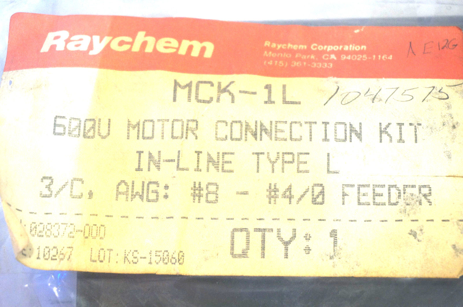NEW RAYCHEM MCK-1L 600V MOTOR CONNECTION KIT MCK1L$25.00 Out of stock SKU: 351387976508 Category: Motors Description Additional information Description NEW RAYCHEM MCK-1L 600V MOTOR CONNECTION KIT MCK1L 1007 RB Call us anytime at 855-705-0565 Additional information Weight 1 lbs We Buy New and Used Surplus Inventory - Sell to Us