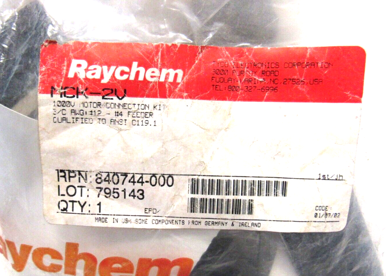 NEW RAYCHEM MCK-2V MOTOR CONNECTION KIT 840744-000 MCK2V$40.00 Out of stock SKU: 196364002294 Category: Other Description Additional information Description NEW RAYCHEM MCK-2V MOTOR CONNECTION KIT 840744-000 MCK2V 28 RB Additional information Weight 0.19 lbs Brand RAYCHEM MPN MCK-2V We Buy New and Used Surplus Inventory - Sell to Us