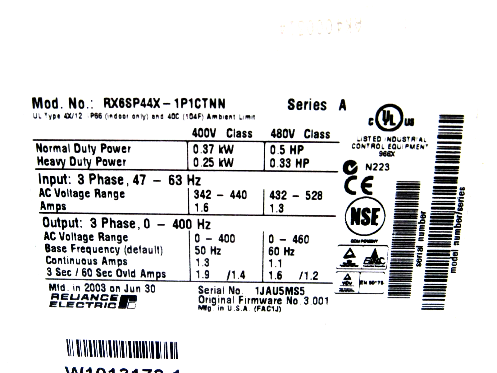 NEW RELIANCE ELECTRIC 6SP44X1P1CTNN AC DRIVE SERIES A