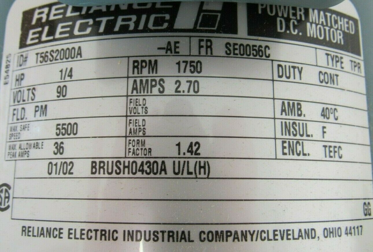 NEW RELIANCE ELECTRIC T56S2000A DC MOTOR 1/4HP 90VDC RPM 1750