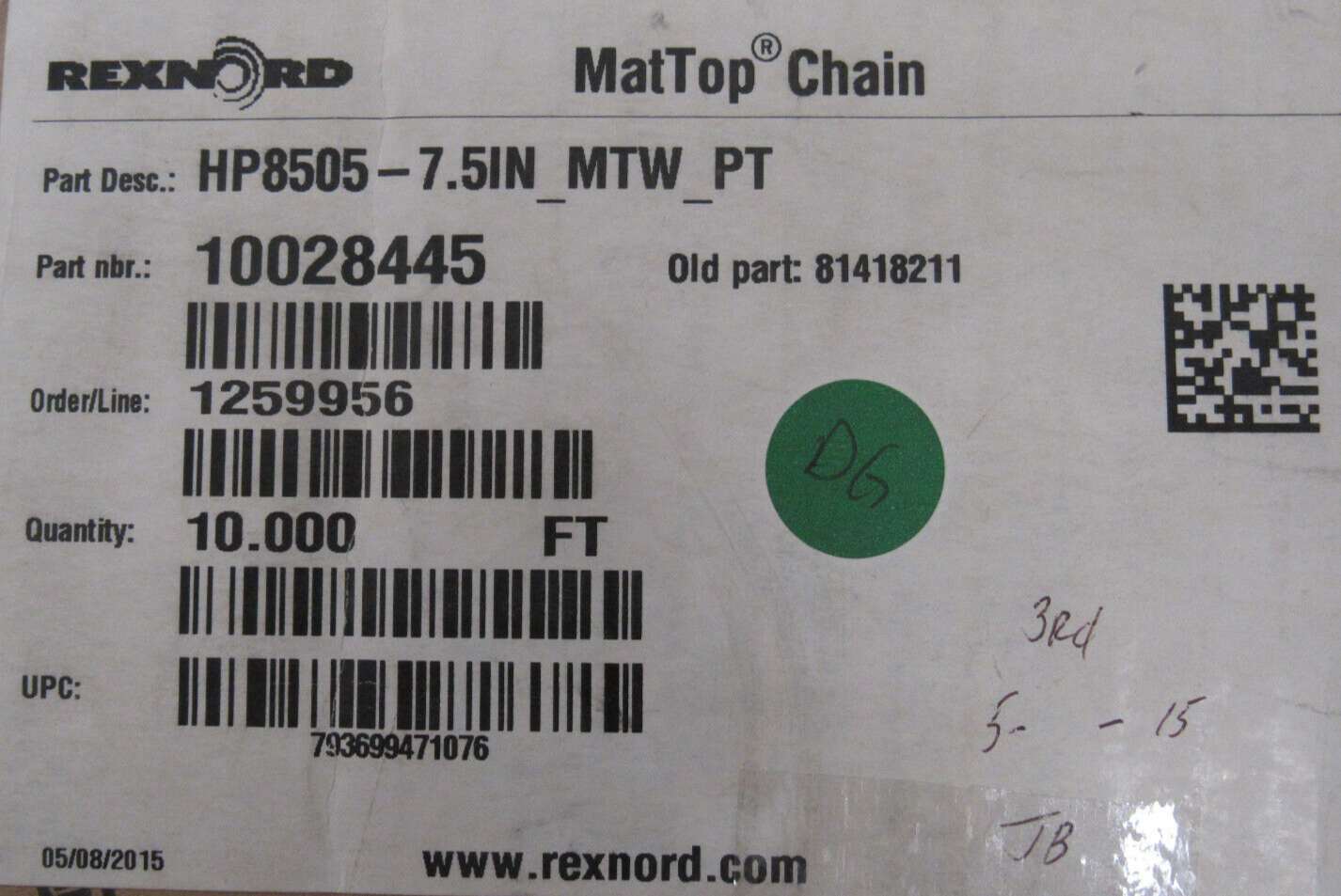 NEW REXNORD 10028445 MAT TOP CONVEYOR CHAIN HP8505-7.5IN MTW PT 10FT$200.00 Only 1 left in stock NEW REXNORD 10028445 MAT TOP CONVEYOR CHAIN HP8505-7.5IN MTW PT 10FT quantity Add to cart SKU: 196749181694 Category: Other Description Additional information Description NEW REXNORD 10028445 MAT TOP CONVEYOR CHAIN HP8505-7.5IN MTW PT 10FT B3/A40 BB Additional information Weight 12.00 lbs Brand REXNORD MPN 10028445 We Buy New and Used Surplus Inventory - Sell to Us