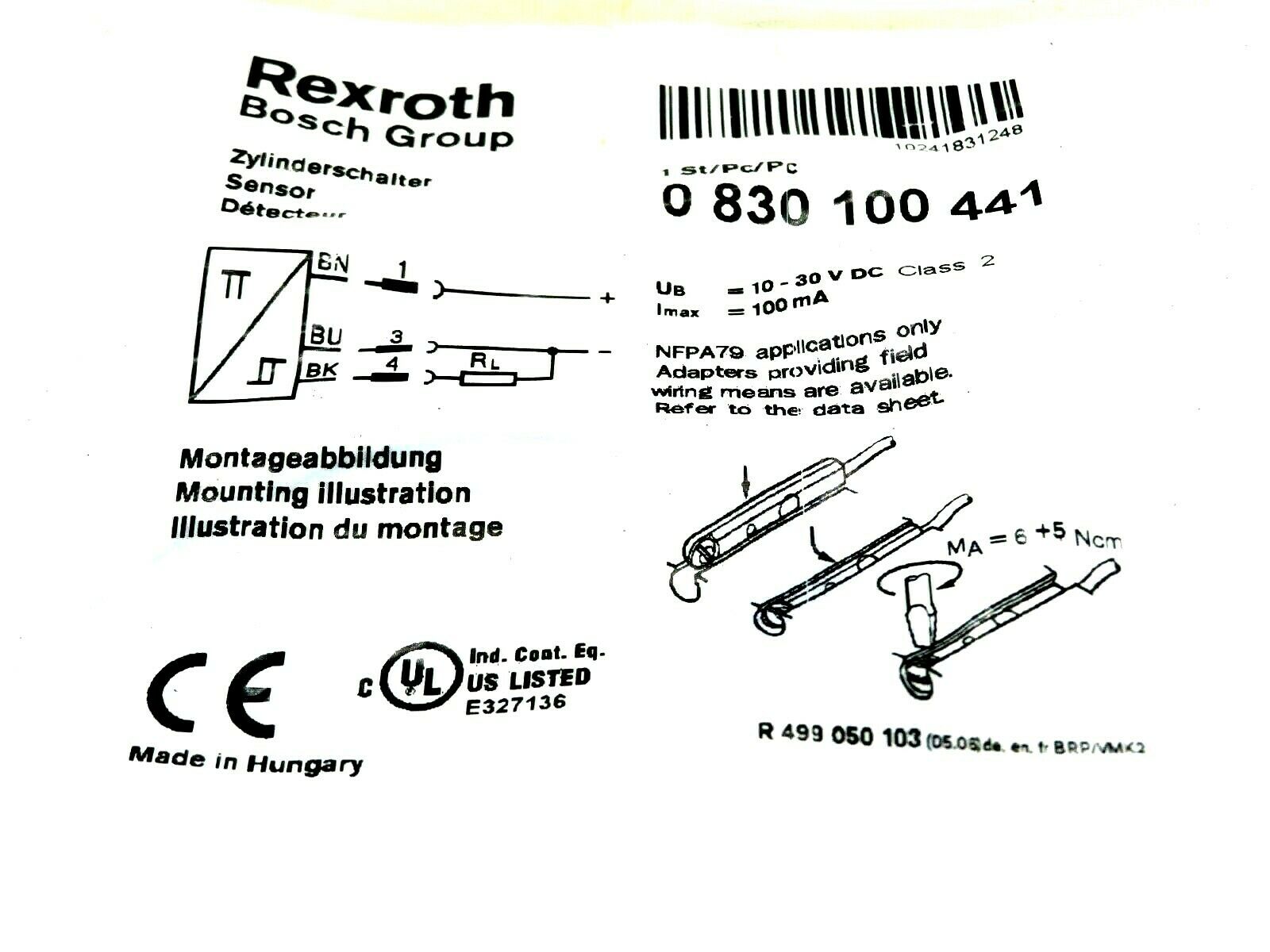 NEW REXROTH BOSCH 0-830-100-441 SENSOR 0830100441