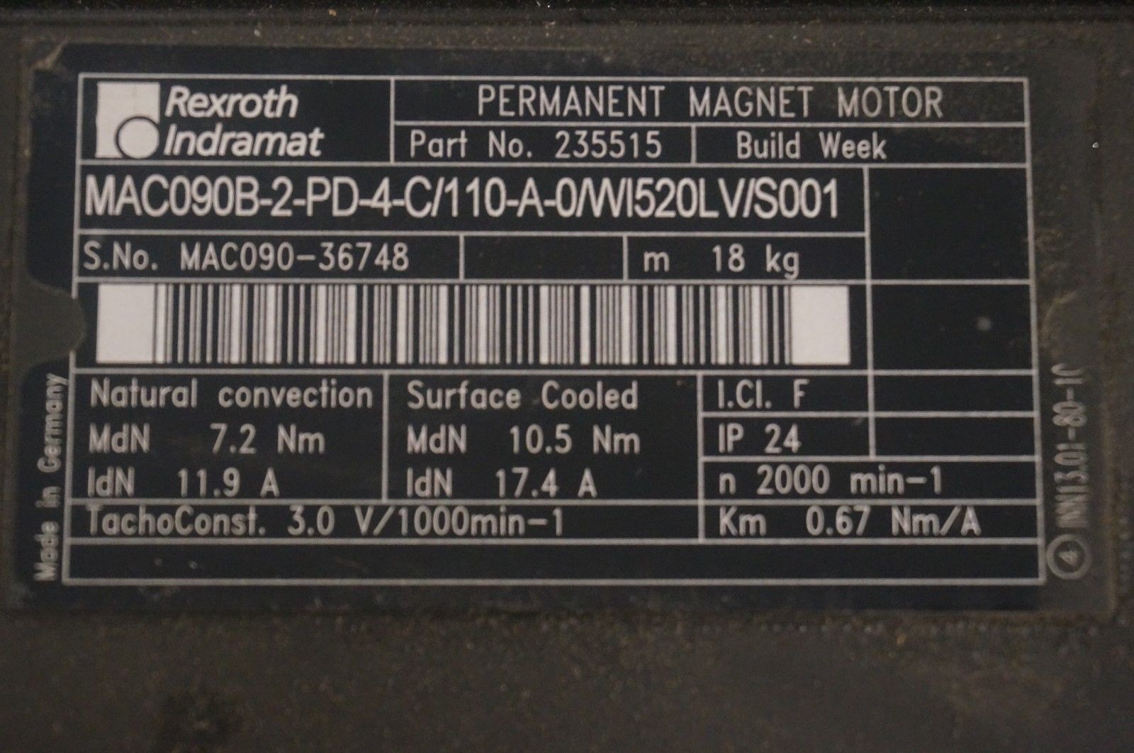 NEW REXROTH MAC090B-2-PD-4-C/110-A-0/WI520LV/S001 SERVO MOTOR 235515