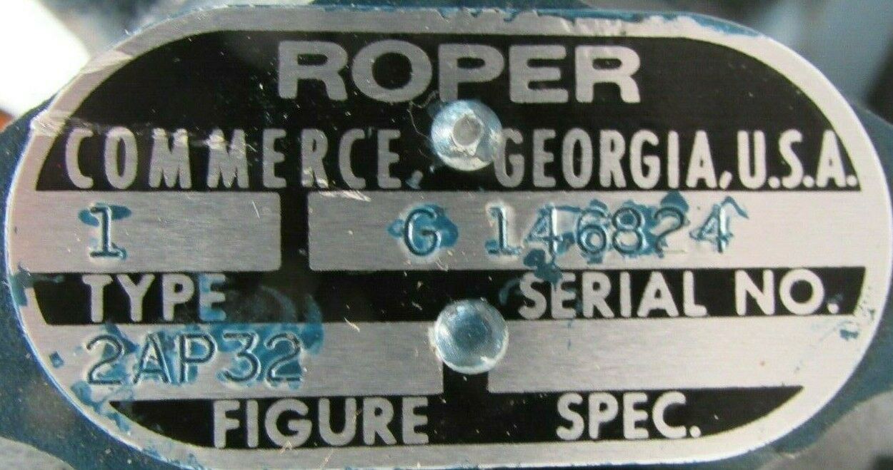 NEW ROPER 2AP32 GEAR PUMP TYPE 1$1,500.00 Out of stock SKU: 174273864156 Category: Other Description Additional information Description NEW ROPER 2AP32 GEAR PUMP TYPE 1NEW, NO BOX B3/S1 BB Additional information Weight 45.00 lbs MPN 2AP32 Country/Region of Manufacture United States Brand ROPER We Buy New and Used Surplus Inventory - Sell to Us
