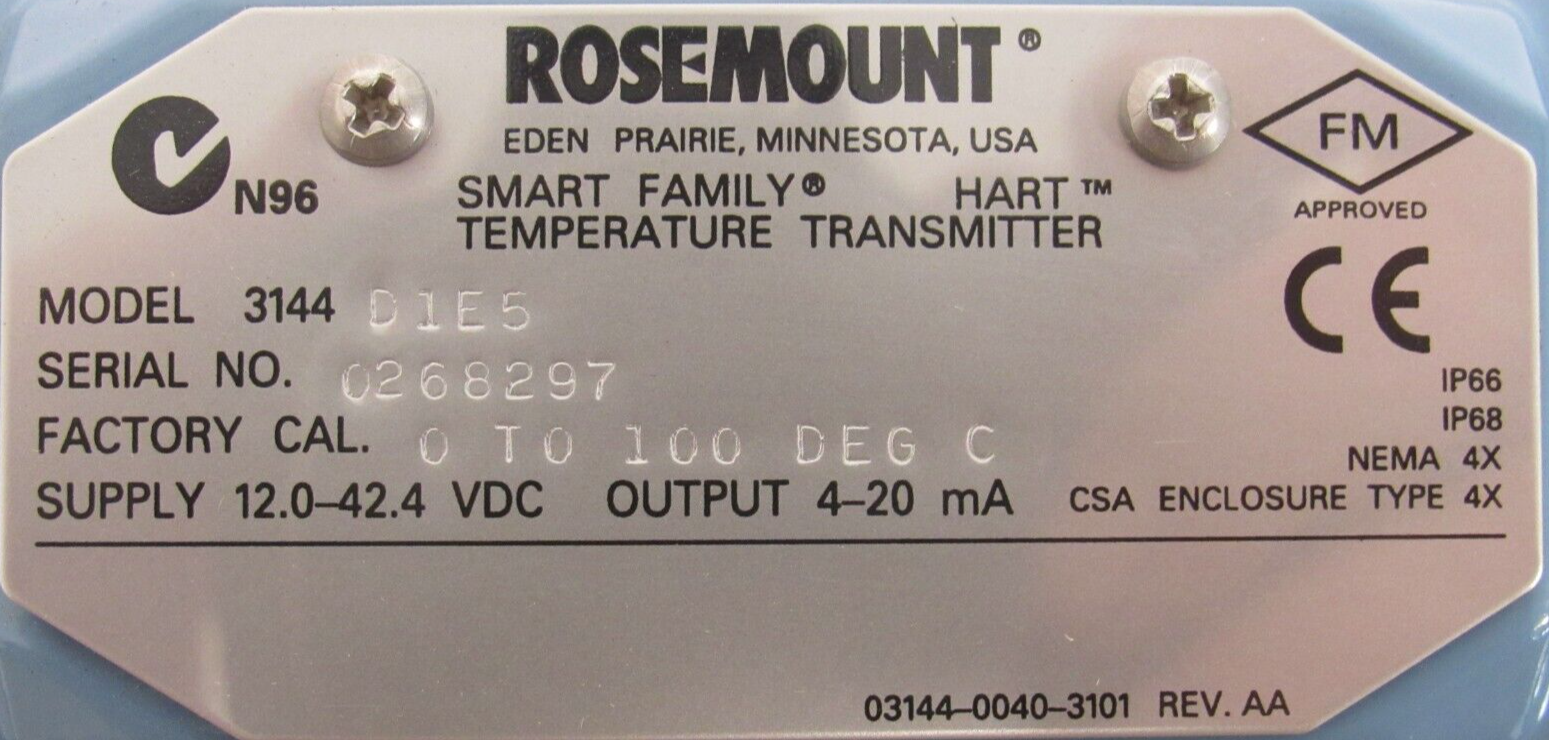 NEW ROSEMOUNT 3144D1E5 TEMPERATURE TRANSMITTER$500.00 Out of stock SKU: 354616687511 Category: Other Description Additional information Description NEW ROSEMOUNT 3144D1E5 TEMPERATURE TRANSMITTER B3/40 BB Additional information Weight 6.00 lbs Brand ROSEMOUNT MPN 3144D1E5 We Buy New and Used Surplus Inventory - Sell to Us