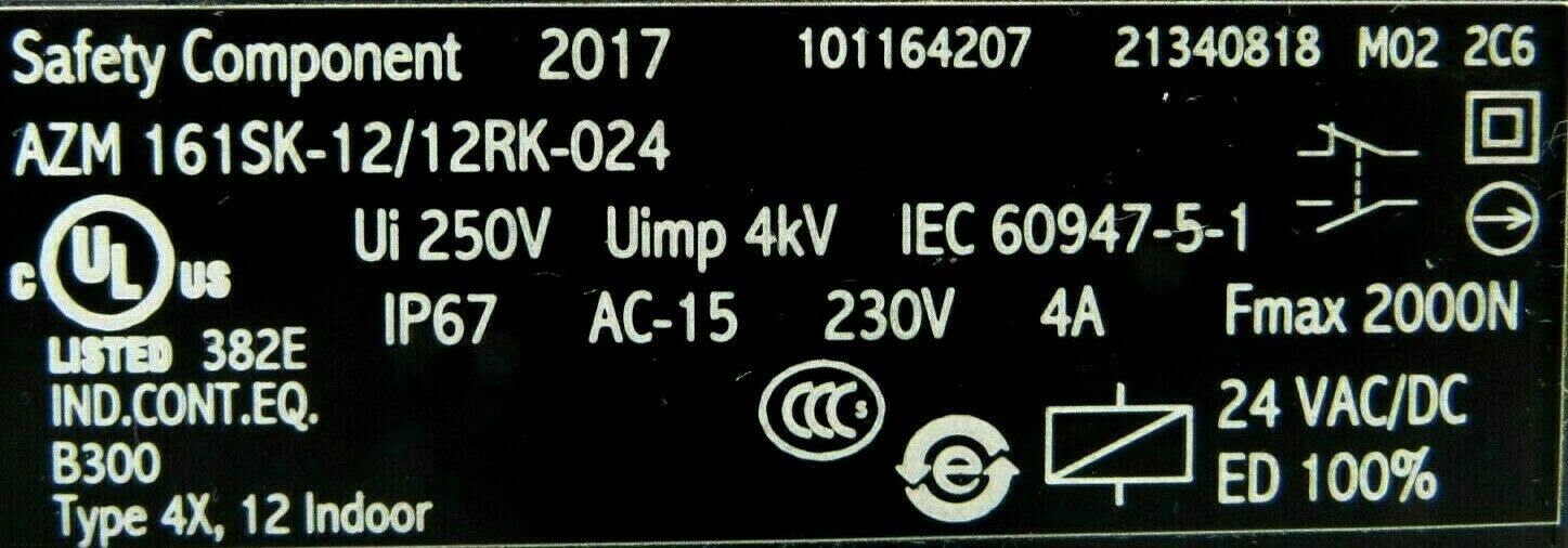 NEW SCHMERSAL 101164207 SOLENOID INTERLOCK SWITCH AZM 161SK-12/12RK-024$250.00 Out of stock SKU: 174005730654 Category: Other Description Additional information Description NEW SCHMERSAL 101164207 SOLENOID INTERLOCK SWITCH 3132 BB Additional information Weight 2.00 lbs Country/Region of Manufacture Unknown MPN 101164207 Brand SCHMERSAL We Buy New and Used Surplus Inventory - Sell to Us