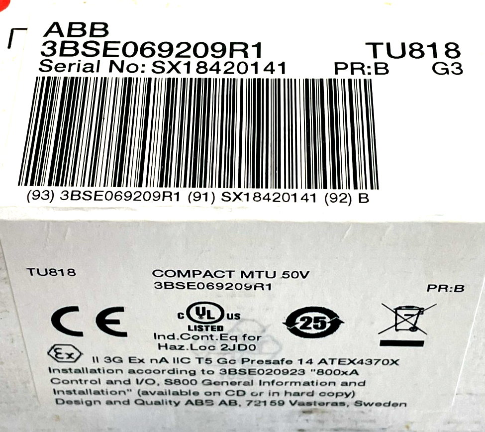 NEW SEALED ABB 3BSE069209R1 COMPACT MODULE TERMINATION UNIT TU818