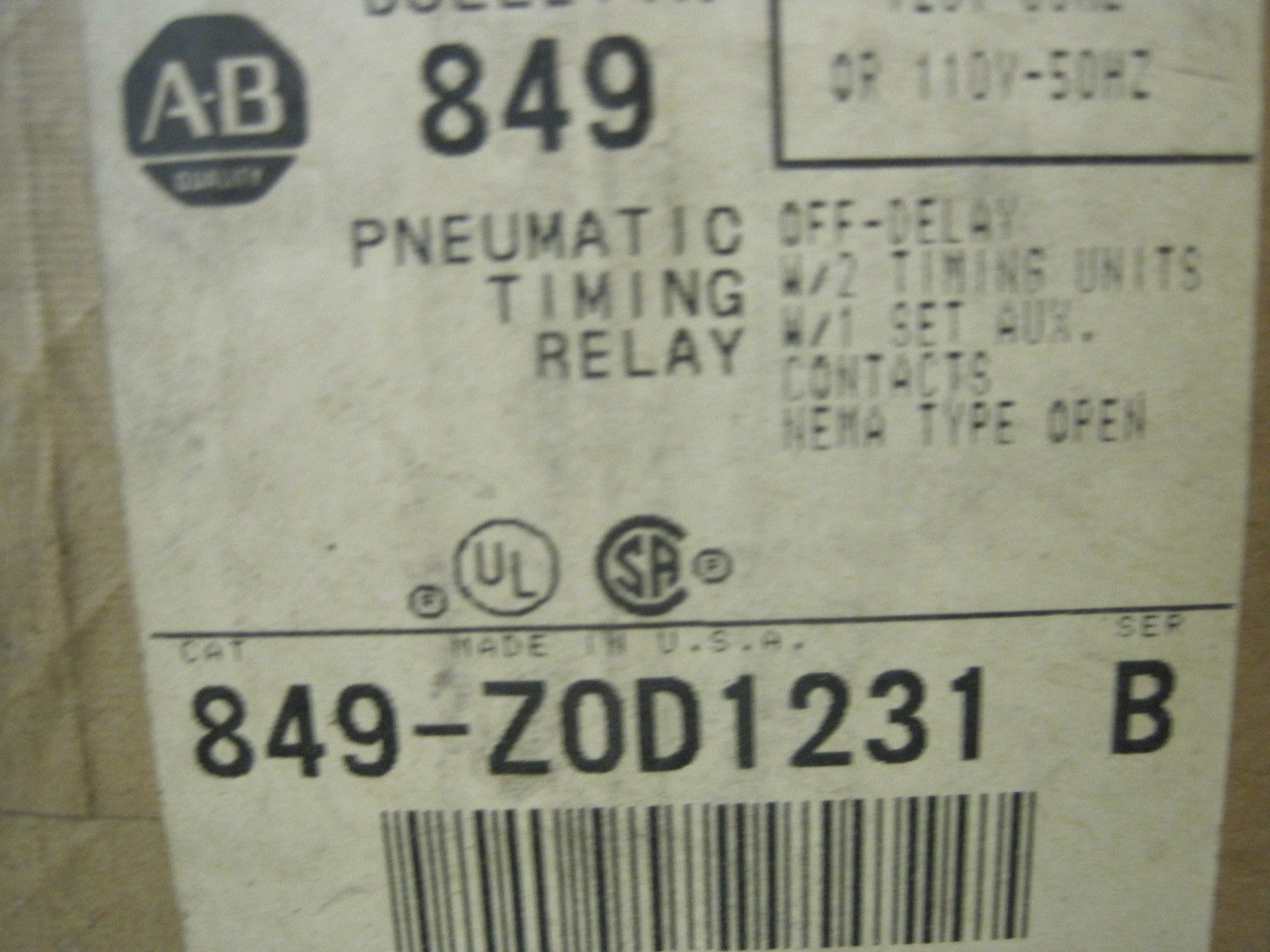 New Sealed Allen Bradley 849-ZOD1231 Pneumatic Timer 849ZOD1231$380.00 Only 1 left in stock New Sealed Allen Bradley 849-ZOD1231 Pneumatic Timer 849ZOD1231 quantity Add to cart SKU: 350750786040 Categories: Other, Timers Description Additional information Description New Sealed Allen Bradley 849-ZOD1231 Pneumatic Timer 849ZOD1231 11-492 rb Additional information Weight 1 lbs We Buy New and Used Surplus Inventory - Sell to Us