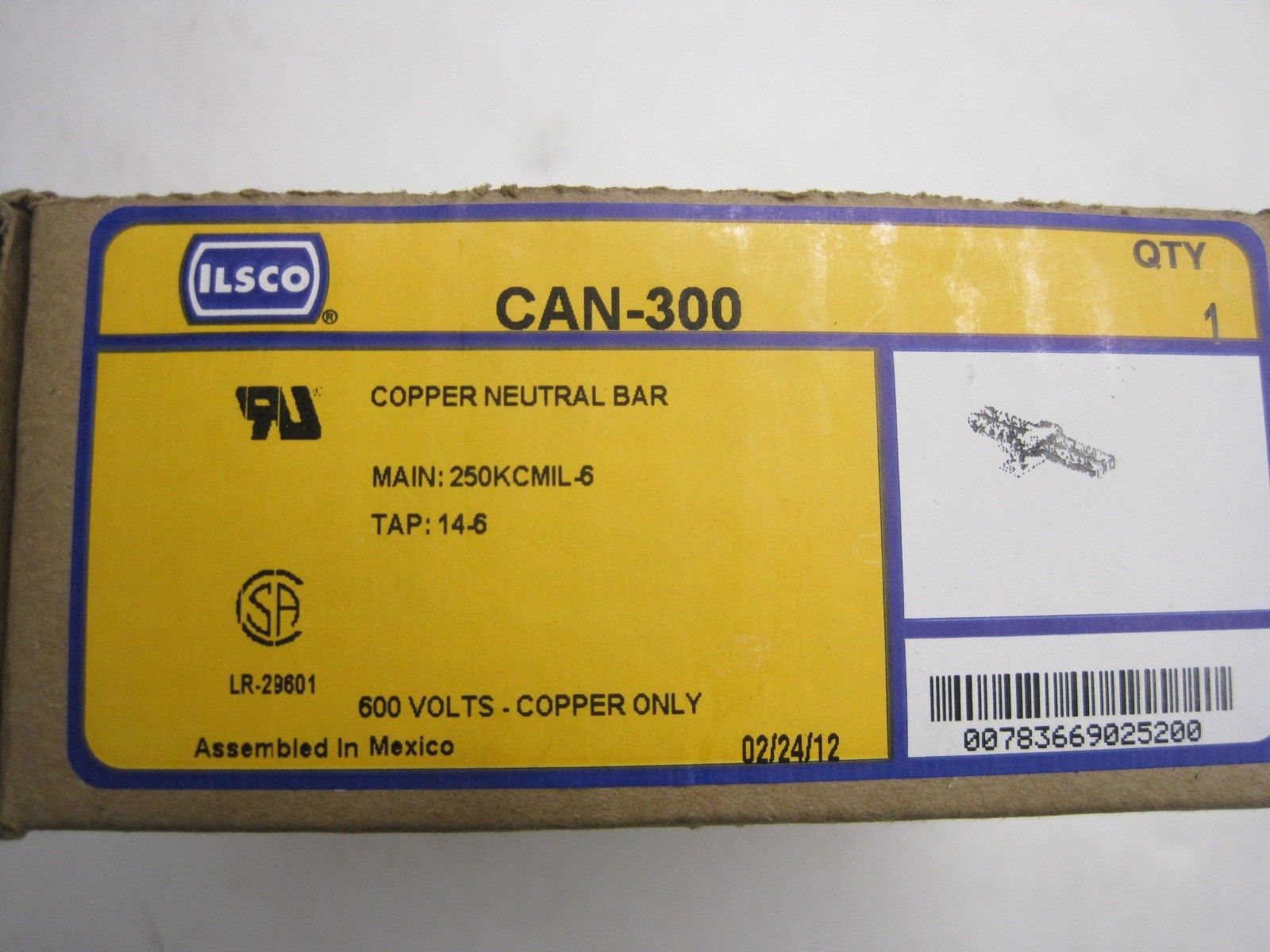NEW SEALED ILSCO CAN-300 COPPER NEUTRAL BAR CAN300